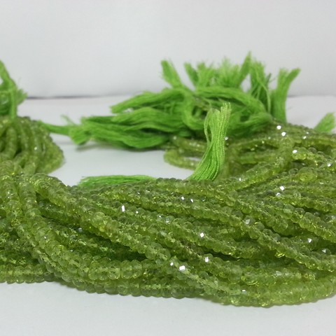 Piedra de peridoto verde Natural de 4mm y 5mm, cuentas de piedras preciosas Rondelle facetadas, cadena de hilo, piedras semipreciosas para la fabricación de joyas reales